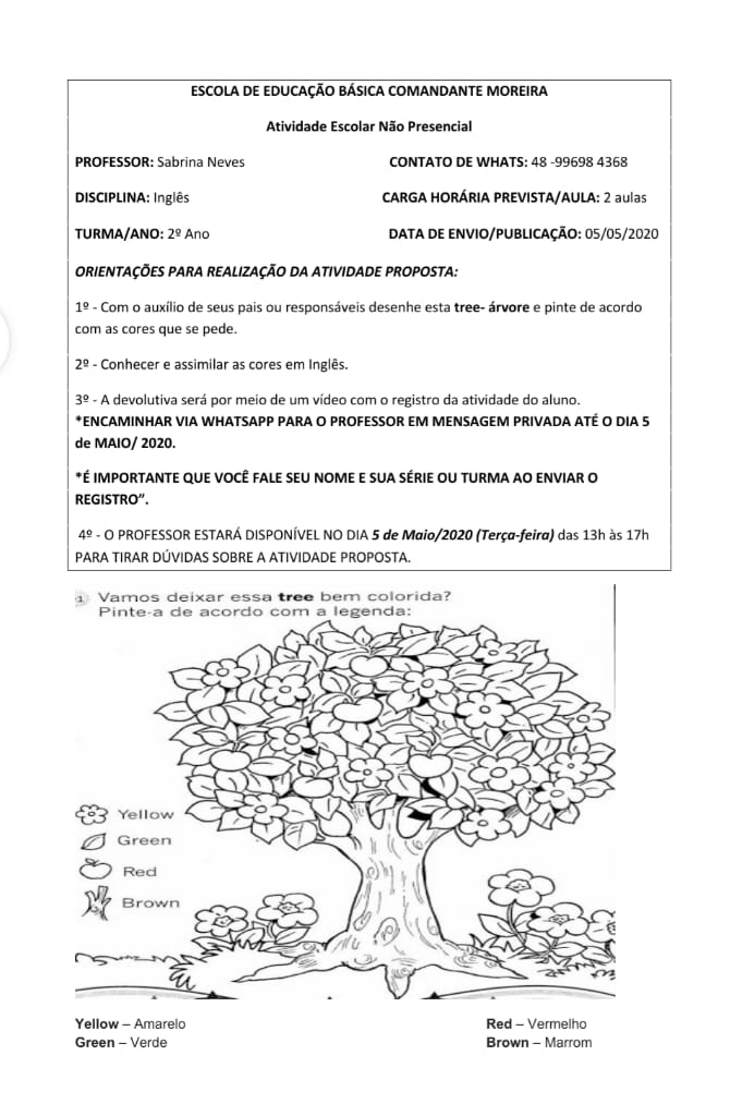 Terça-feira: Inglês e Educação Física